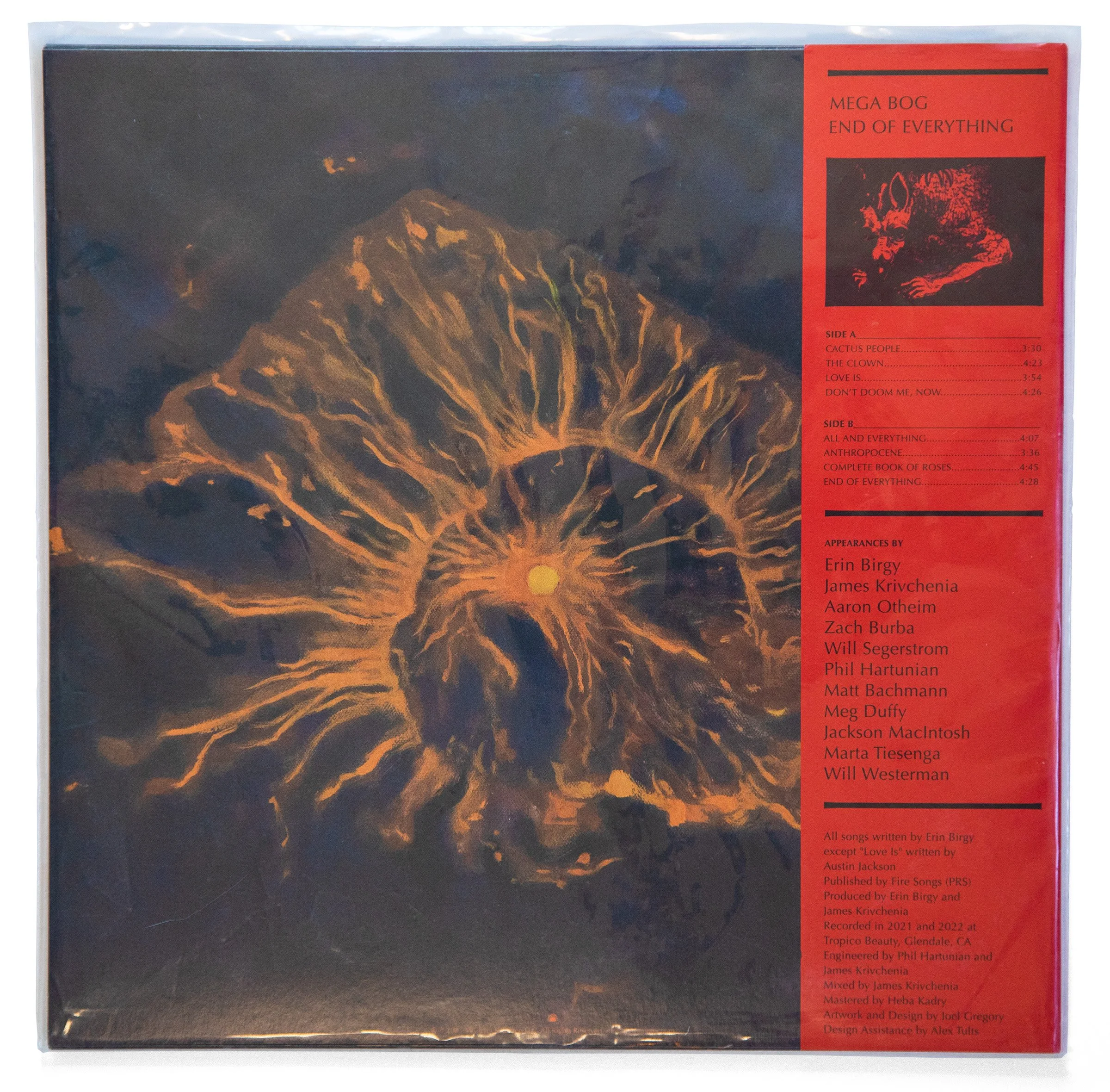 Mega Bog is an experimental pop ensemble led by musician Erin Elizabeth Birgy. Living against the backdrop of lockdowns and forest fires in 2020 — surrounded by seemingly endless turmoil — Birgy produced Mega Bog’s seventh album, End of Everything. The record speaks of surrender, of mourning, and of support in the face of tumultuous self-reflection. Together we collaborated to create visual elements that complemented and compounded the record’s sonic and lyrical achievements.